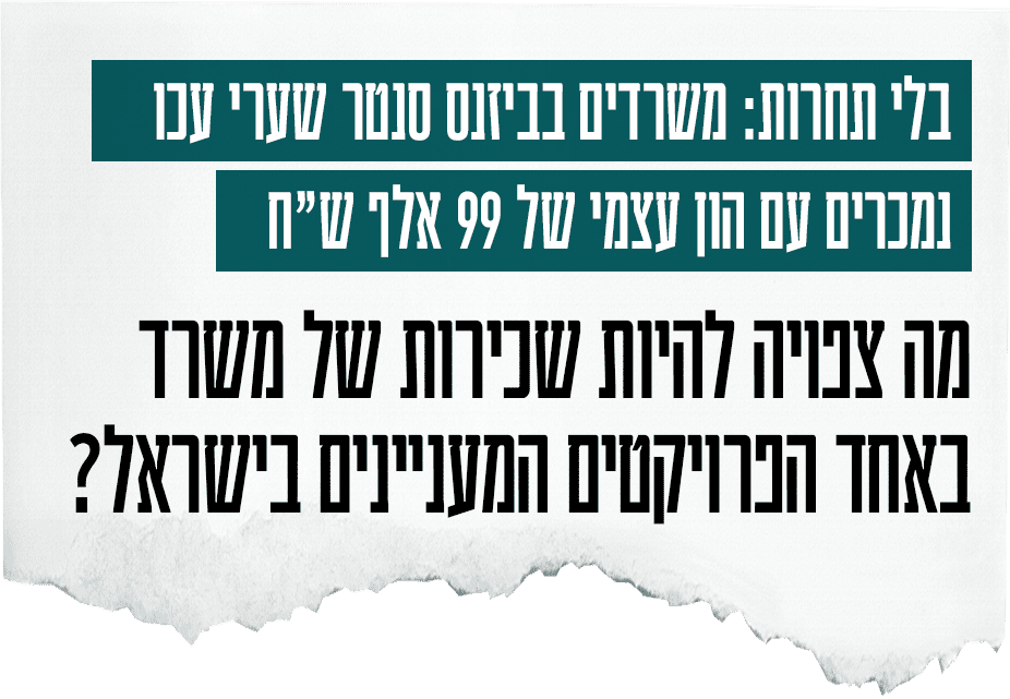 כל משרד בנוי צפוי להניב הכנסה חודשית משכירות של כ-